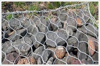 石笼网是金属线材编织的角形网(六角网)制成的网箱,使用的金属线径是根据六角形的大小而不同。如果是金属镀层的金属线六角形,则使用线径为2.0mm到4.0mm的金属线,如果是PVC包覆的金属线编织的六角网,则使用外径为3.0mm到4.5mm的PVC(金属)线。外框边缘的线则使用比六角网线粗一号的线。